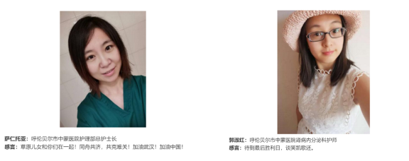 截止到3月2日,內(nèi)蒙古共派出了847名白衣戰(zhàn)士馳援湖北,這中間就有我中南繼教護(hù)理人的身影,她們從草原出發(fā),逆行千里,與荊楚人民并肩作戰(zhàn),共克時(shí)艱。下面兩張圖片表達(dá)了她們的心聲: